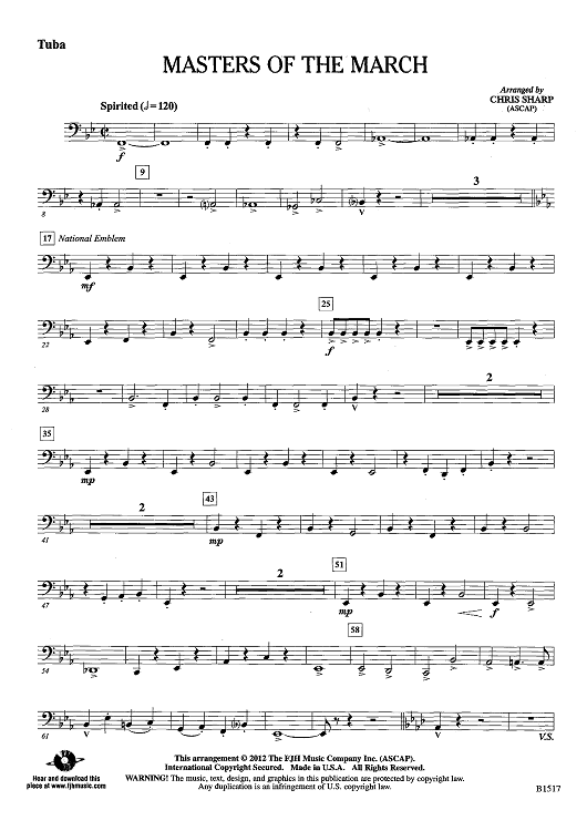 Digital Sheet Music for Masters of the March - Tuba by Various, Chris Sharp scored for Concert Band; id:438804