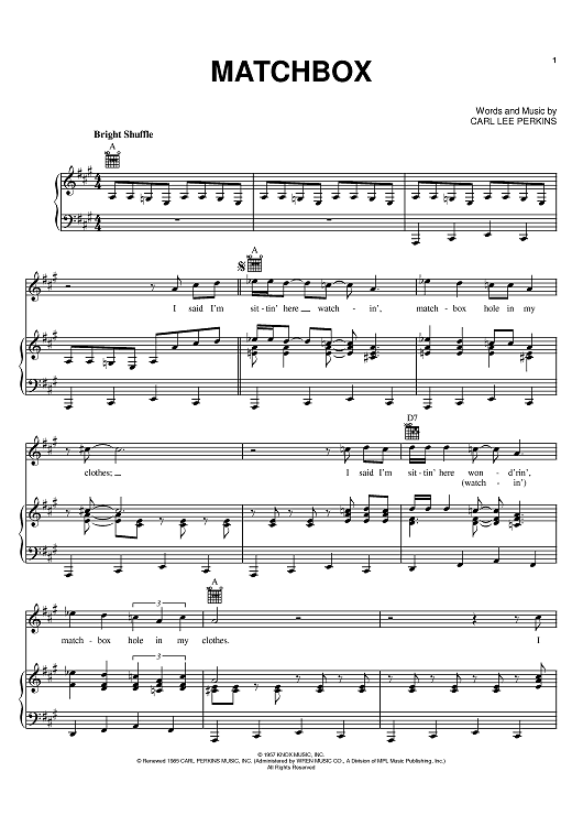 Digital Sheet Music for Matchbox by The Beatles, Jonny Lang, Carl Lee Perkins scored for Piano/Vocal/Chords; id:394799