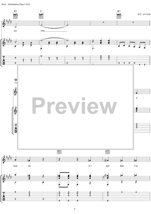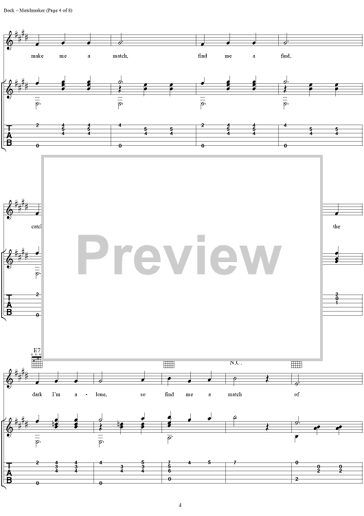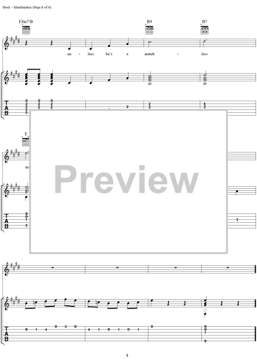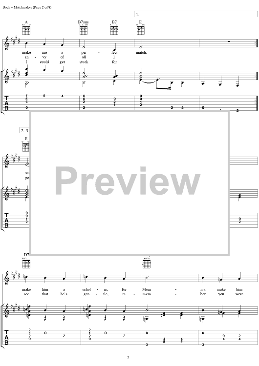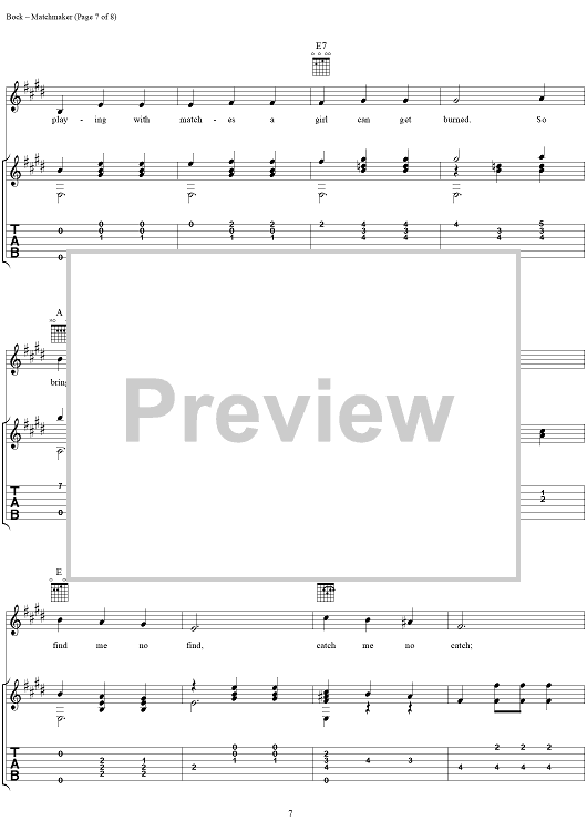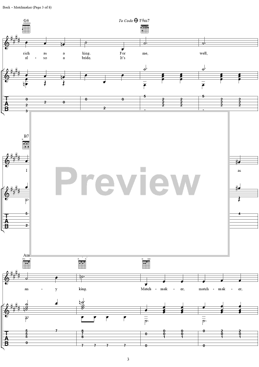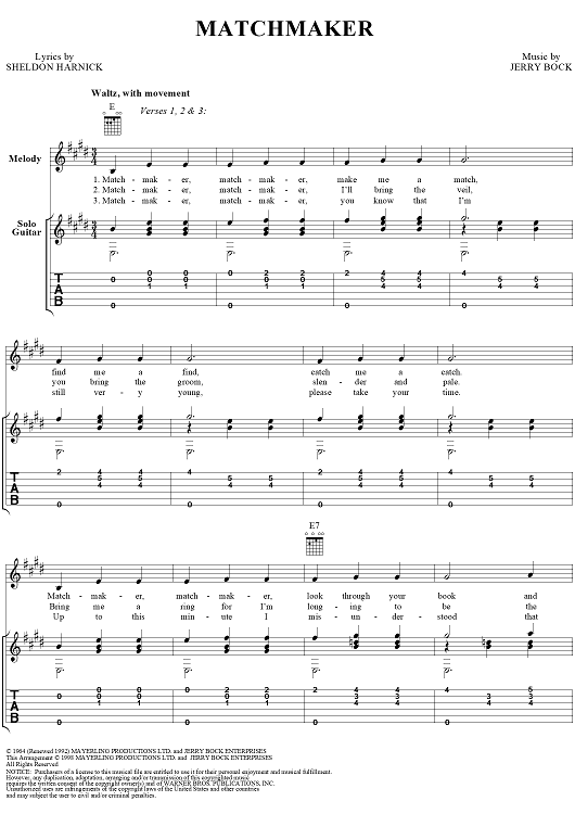 Digital Sheet Music for Matchmaker by Jerry Bock, Sheldon Harnick, Jerry Silverman scored for Guitar Tab/Vocal; id:274740
