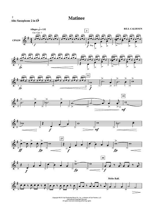 "Matinee - Alto Saxophone 2" Sheet Music by Bill Calhoun