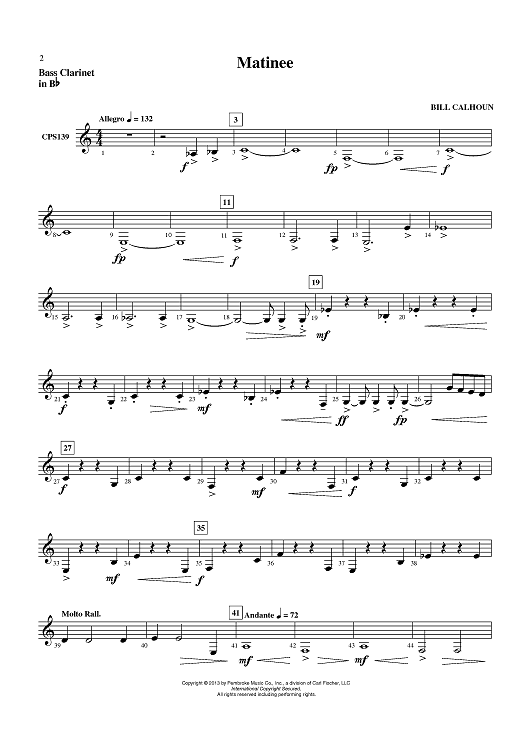 Digital Sheet Music for Matinee - Bass Clarinet in Bb by Bill Calhoun scored for Concert Band; id:435564