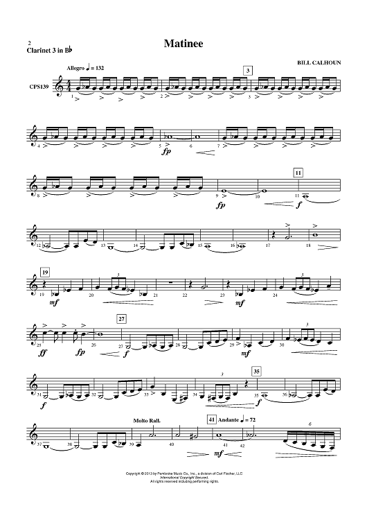 "Matinee - Clarinet 3 in Bb" Sheet Music by Bill Calhoun