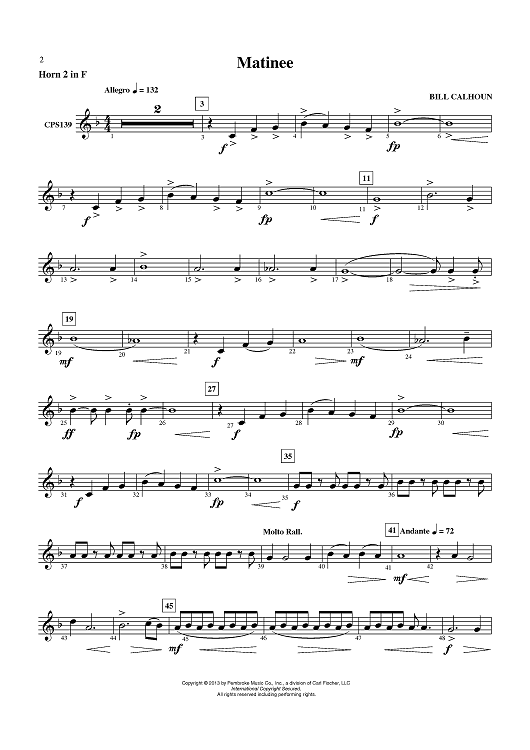 "Matinee - Horn 2 in F" Sheet Music by Bill Calhoun