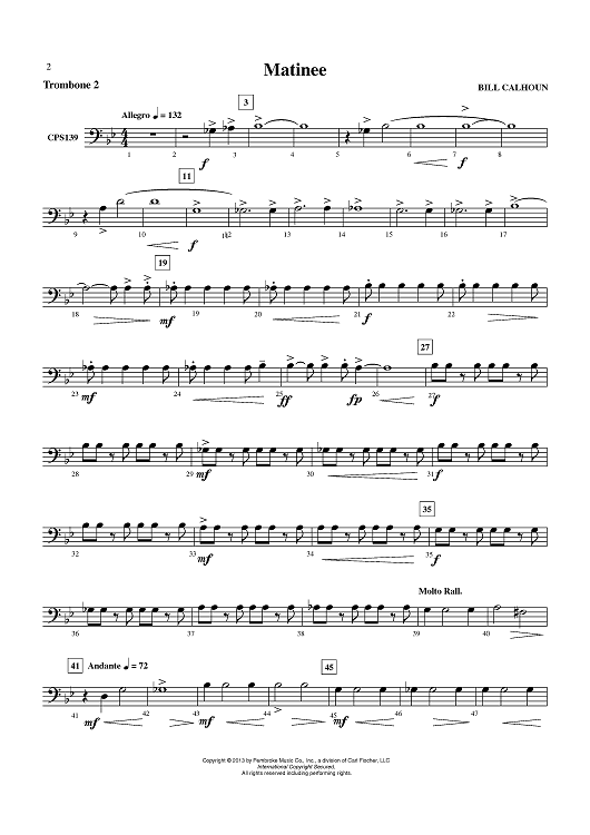 "Matinee - Trombone 2" Sheet Music by Bill Calhoun