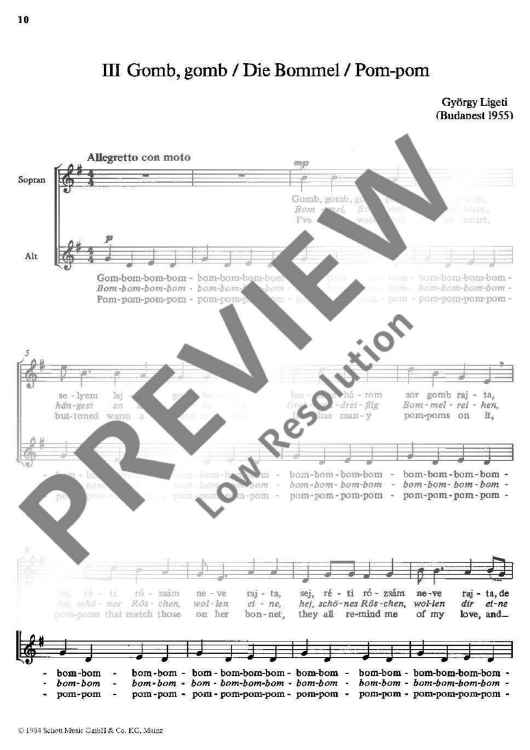 "Mátraszentimrei Dalok - Choral Score" Sheet Music by György Ligeti