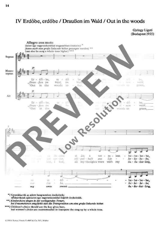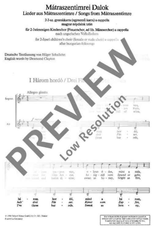Digital Sheet Music for Mátraszentimrei Dalok - Choral Score by György Ligeti scored for Children's Choir (female Choir, Ad Libitum Men's Choir) A Cappella; id:471785