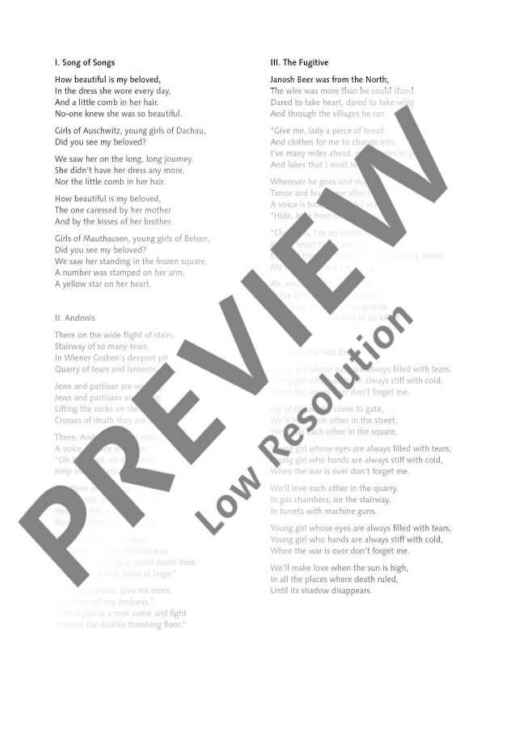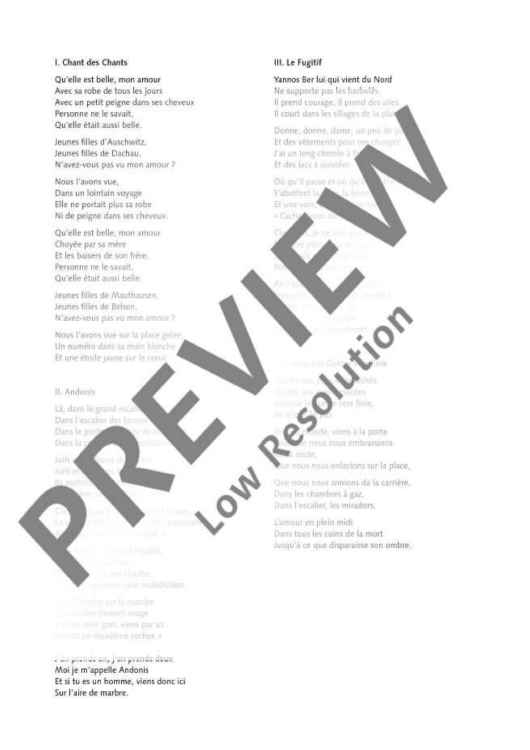 Mauthausen is one of the best-known and most moving political compositions by Theodorakis. In addition to the Greek original version (ED 20861), these versions, some of which have already been performed worldwide and some of which are already available on CD, are published in German, English and Hebrew here.