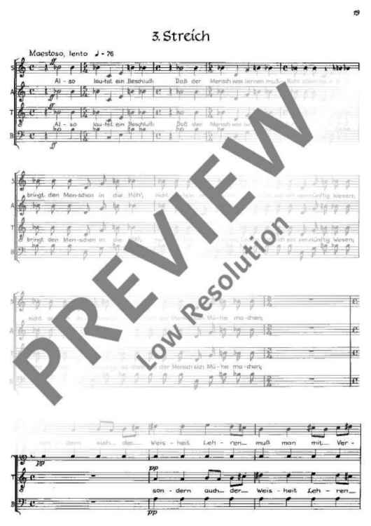 Digital Sheet Music for Max und Moritz - Choral Score by Heinrich Sutermeister scored for Mixed Choir Or Vocal Quartet (satb) And Piano (4 Hands); id:473096