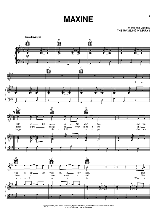 Digital Sheet Music for Maxine by Bob Dylan, George Harrison, Tom Petty, Jeff Lynne, The Traveling Wilburys scored for Piano/Vocal/Chords; id:402456