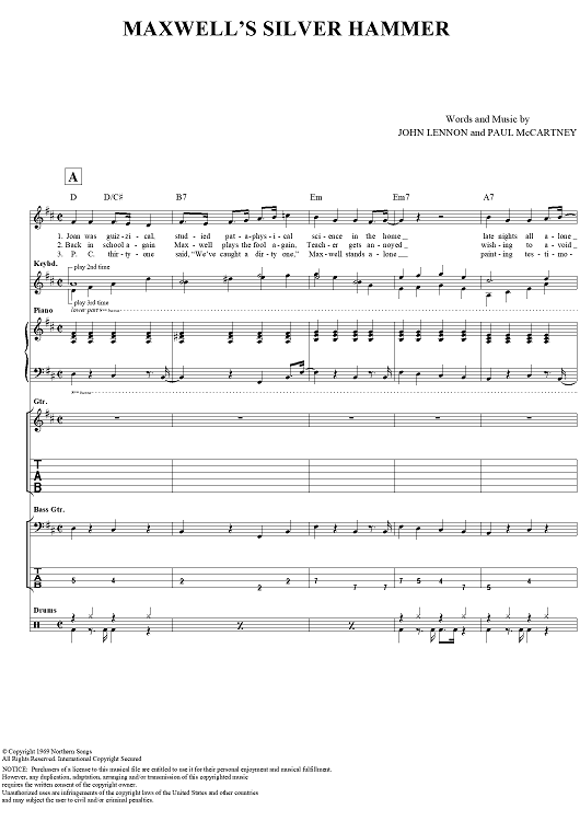"Maxwell's Silver Hammer" Sheet Music by The Beatles