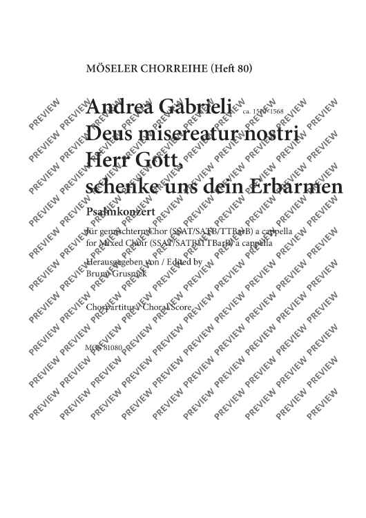 "May God be gracious to us - Choral Score" Sheet Music by Andrea Gabrieli