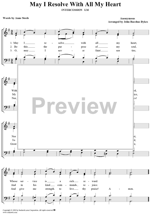 Digital Sheet Music for May I Resolve With All My Heart by Anne Steele, Unknown Writer, John Bacchus Dykes scored for Four-part Mixed Chorus; id:118139