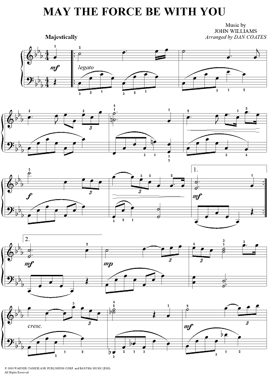 Digital Sheet Music for May the Force Be With You by Dan Coates, John Williams scored for Easy Piano; id:291152