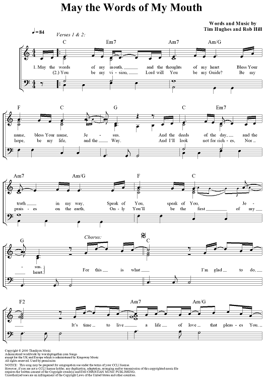 Digital Sheet Music for May the Words of My Mouth by Tim Hughes, Rob Hill scored for Piano/Vocal/Chords; id:320938