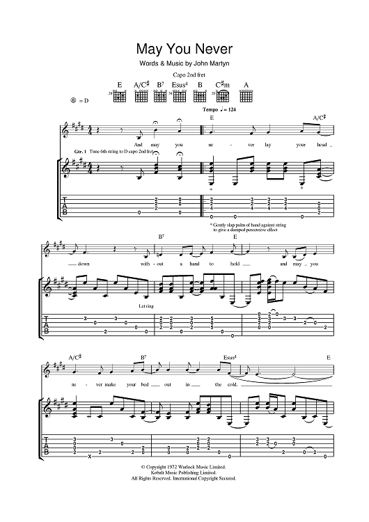 Digital Sheet Music for May You Never by John Martyn scored for Guitar Tab; id:401219