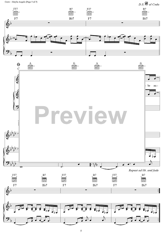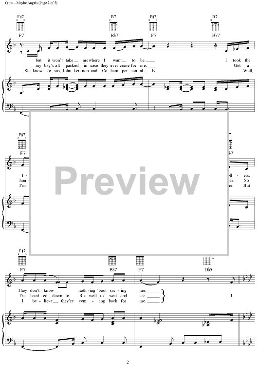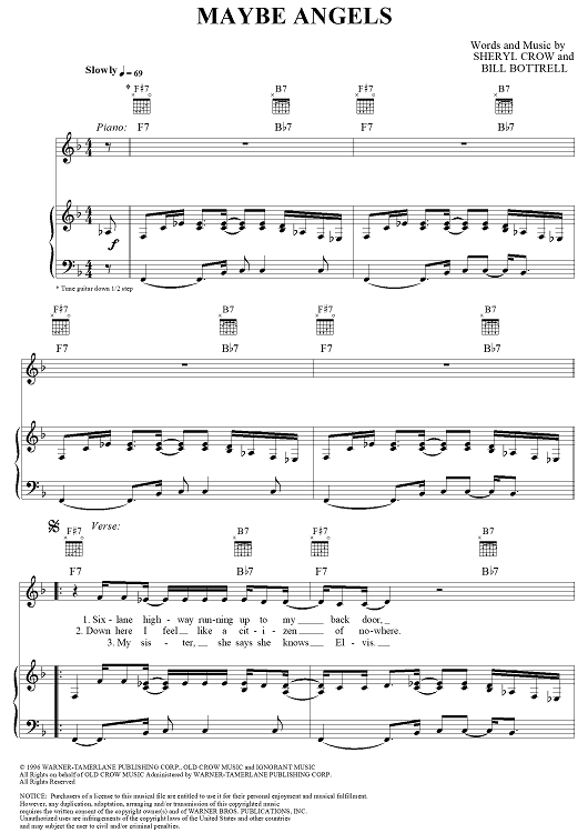 Digital Sheet Music for Maybe Angels by Sheryl Crow, Bill Bottrell scored for Piano/Vocal/Chords; id:272026