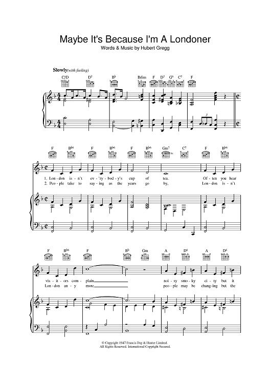 Digital Sheet Music for Maybe It's Because I'm A Londoner by Hubert Gregg scored for Piano/Vocal/Chords; id:393222