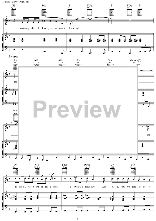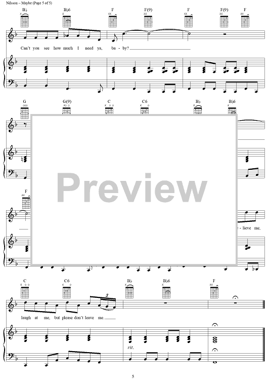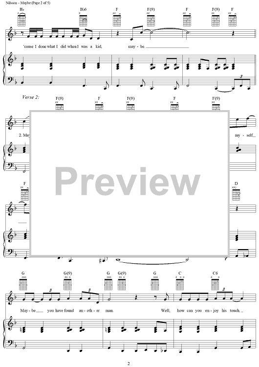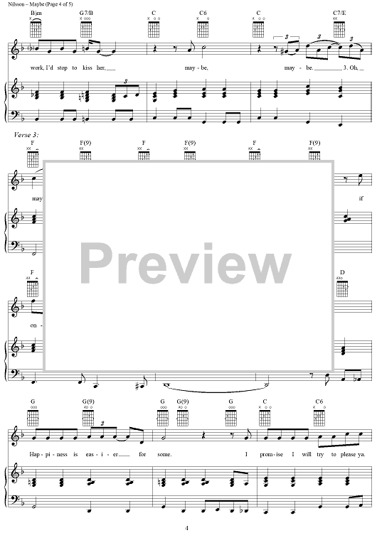 Digital Sheet Music for Maybe by Harry Nilsson scored for Piano/Vocal/Chords; id:207053