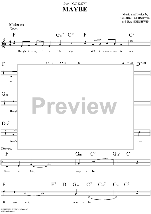 Digital Sheet Music for Maybe by , George Gershwin, Ira Gershwin scored for Lead Sheet; id:283663