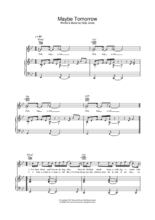 Digital Sheet Music for Maybe Tomorrow by Kelly Jones, Stereophonics scored for Piano/Vocal/Chords; id:378077