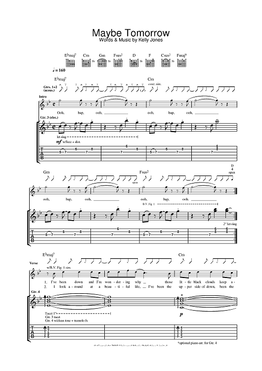 Digital Sheet Music for Maybe Tomorrow by Kelly Jones, Stereophonics scored for Guitar Tab; id:378078