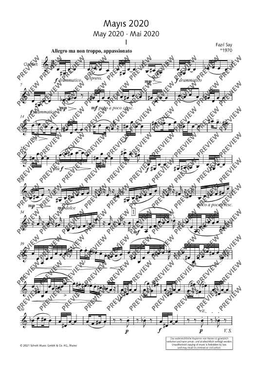 Digital Sheet Music for Mayis 2020 by Fazil Say scored for Clarinet In Bb; id:496140