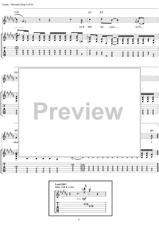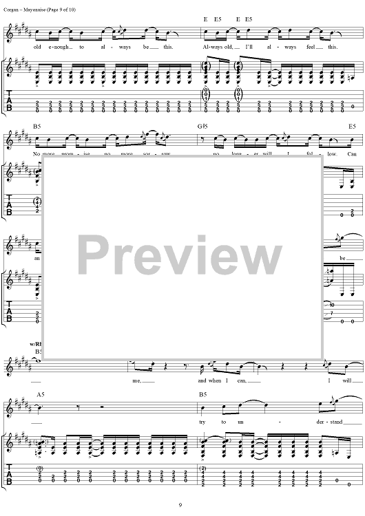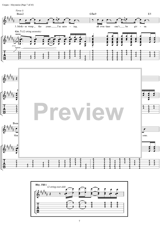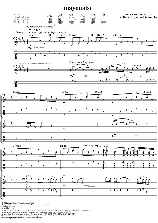 Digital Sheet Music for Mayonaise by Billy Corgan, James Iha, Smashing Pumpkins scored for Guitar Tab/Vocal; id:111922