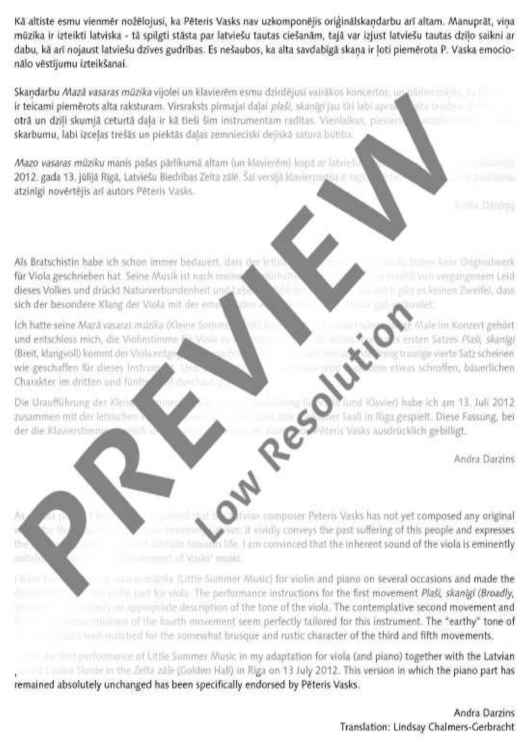 "Maza vasaras muzika" Sheet Music by Peteris Vasks