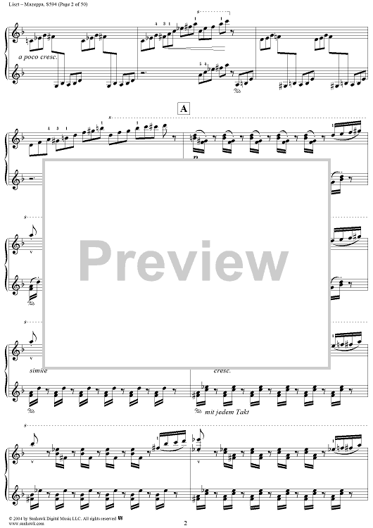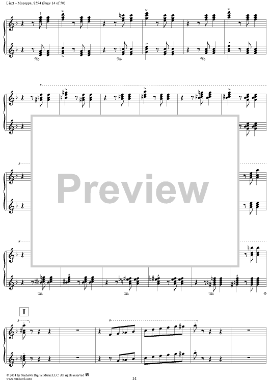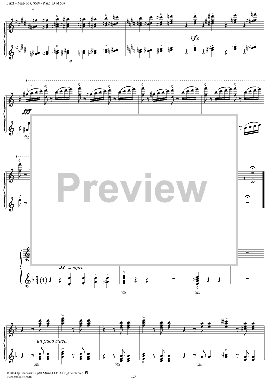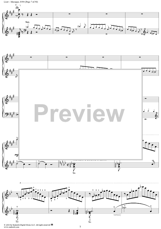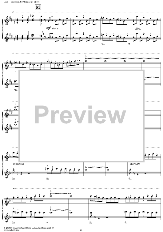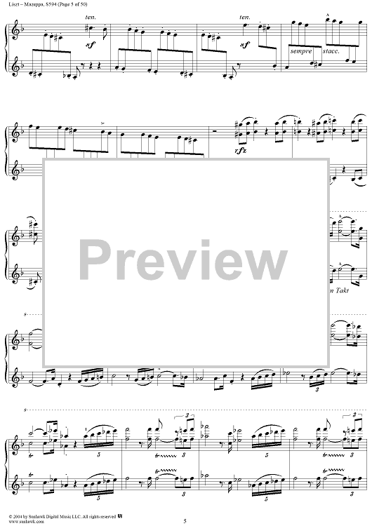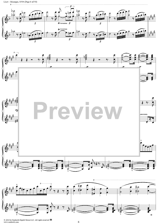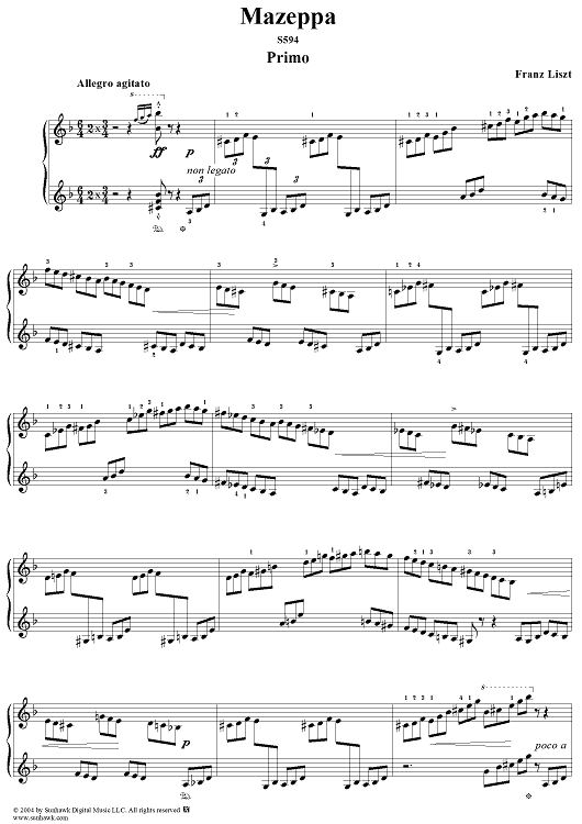 Digital Sheet Music for Mazeppa, S594 by Franz Liszt scored for 1 Piano, 4 Hands; id:295989