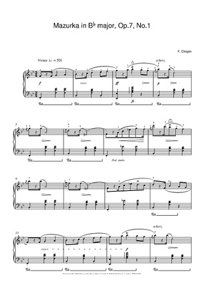Digital Sheet Music for Mazurka in Bb major Op 7 No 1 by Frederic Chopin scored for Piano; id:378735