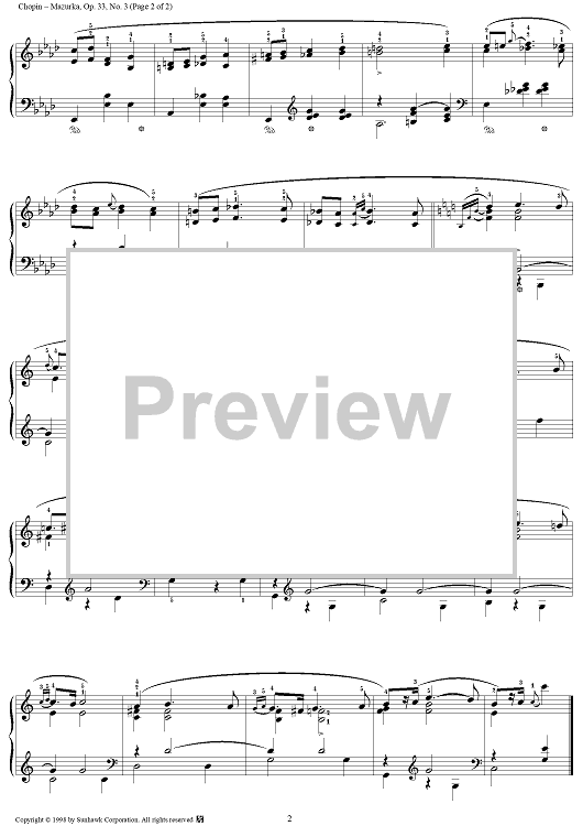 Digital Sheet Music for Mazurka No. 24 in C Major, Op. 33, No. 3 by Frederic Chopin scored for Piano Solo; id:95349
