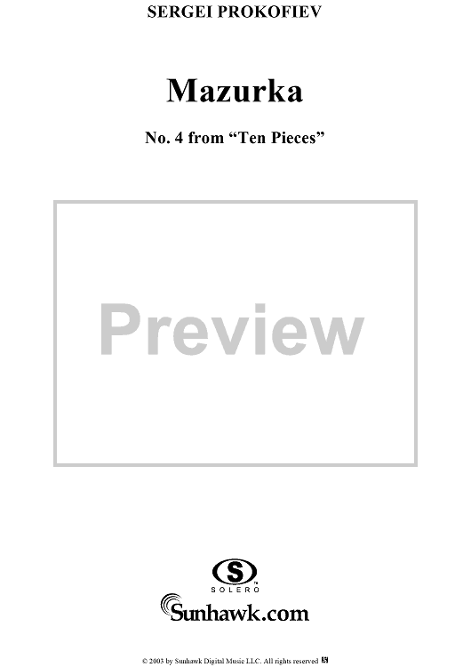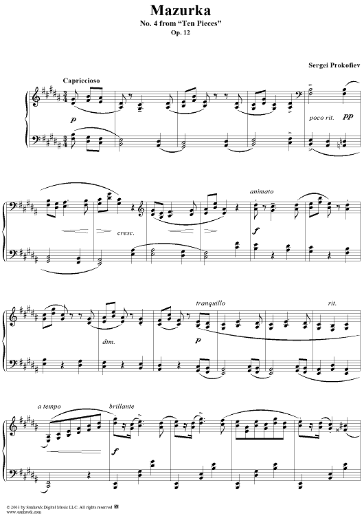 Digital Sheet Music for Mazurka, No. 4 from "Ten Pieces", Op. 12 by Sergei Prokofiev scored for Piano Solo; id:295319