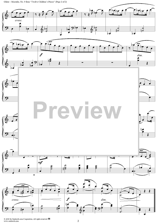 Digital Sheet Music for Mazurka - No. 9 from "Twelve Children's Pieces" Op. 31 by Reinhold Glière scored for Piano Solo; id:268046