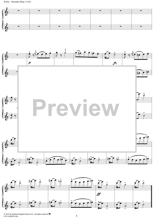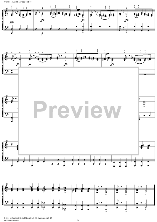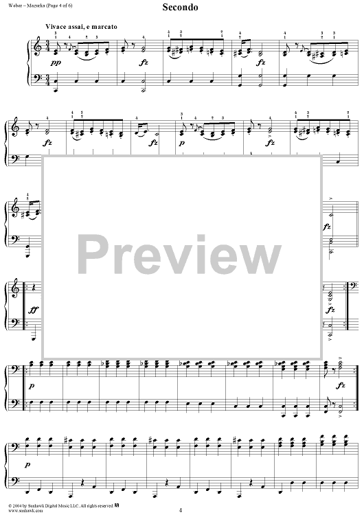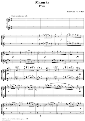 Digital Sheet Music for Mazurka by Carl Maria Von Weber scored for 1 Piano, 4 Hands; id:295647