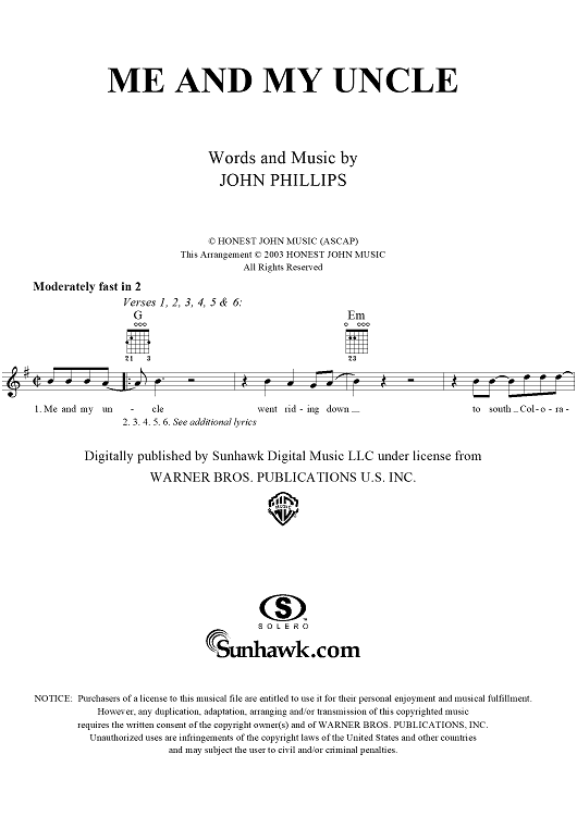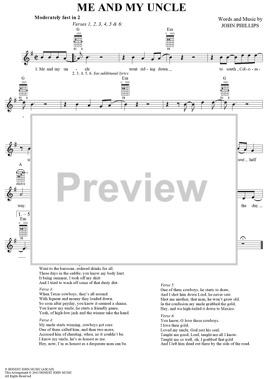 Digital Sheet Music for Me and My Uncle by John Phillips, Grateful Dead scored for Easy Guitar/Vocal; id:294124