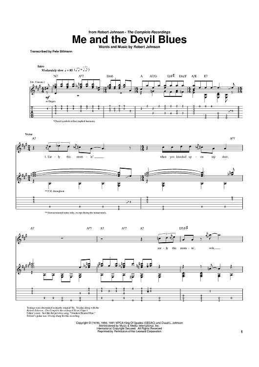 "Me And The Devil Blues" Sheet Music by Robert Johnson