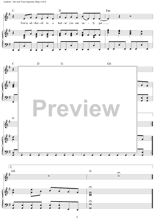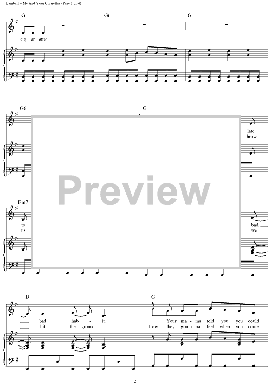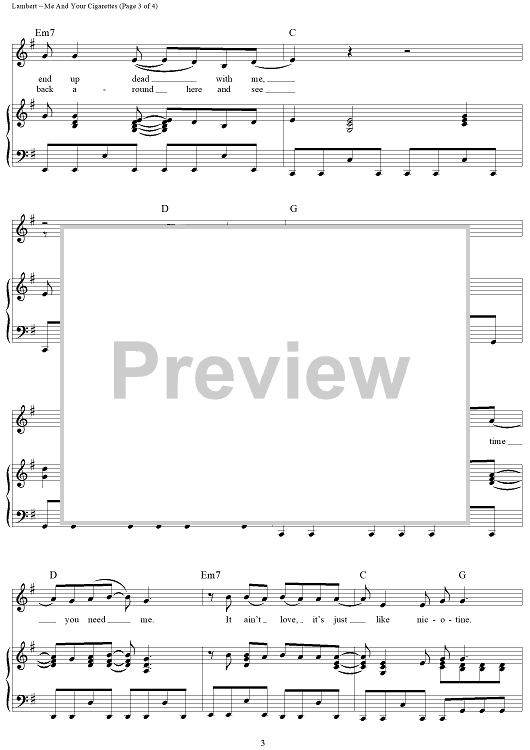 "Me and Your Cigarettes" Sheet Music by Miranda Lambert