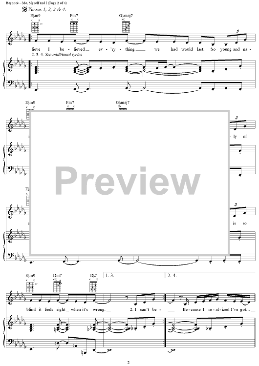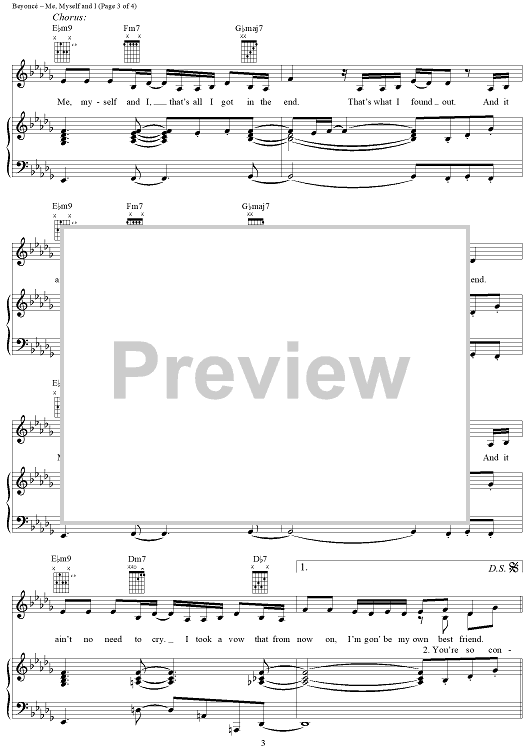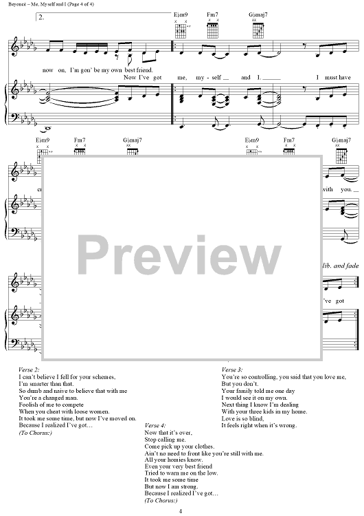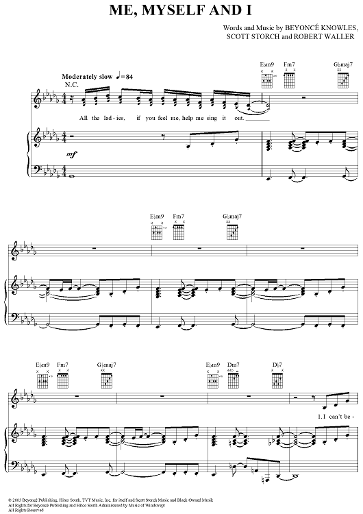 Digital Sheet Music for Me, Myself and I by Robert Waller, Beyonce, Scott Storch scored for Piano/Vocal/Chords; id:305245