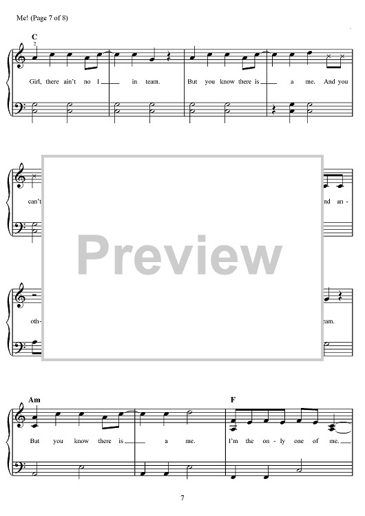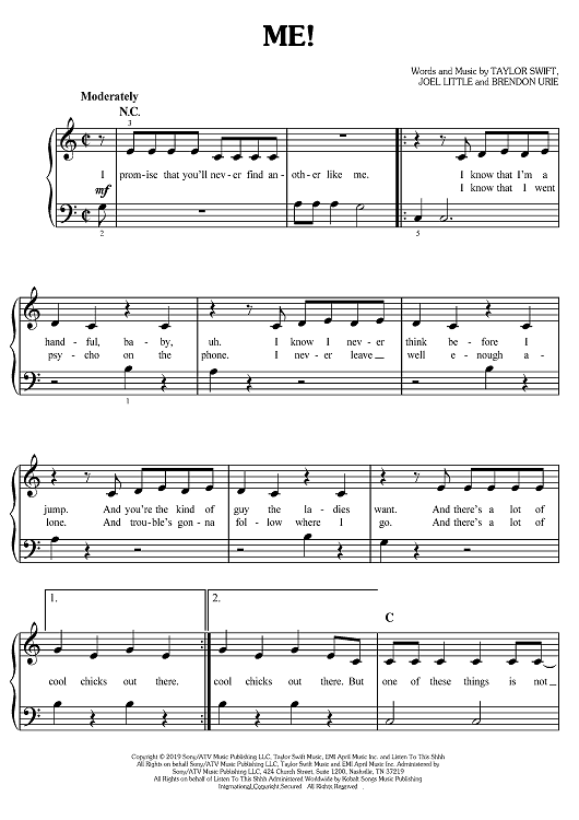 Digital Sheet Music for Me! by Brendon Urie, Taylor Swift, Joel Little scored for Easy Piano/Vocal/Chords; id:467523