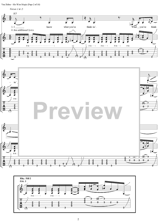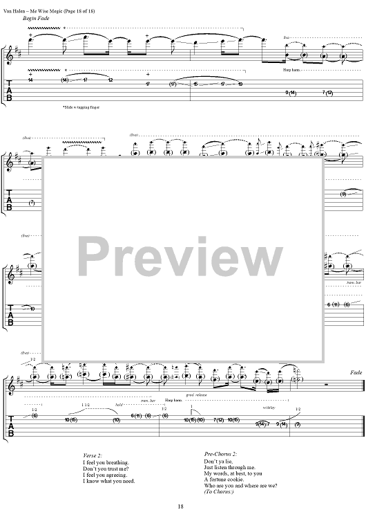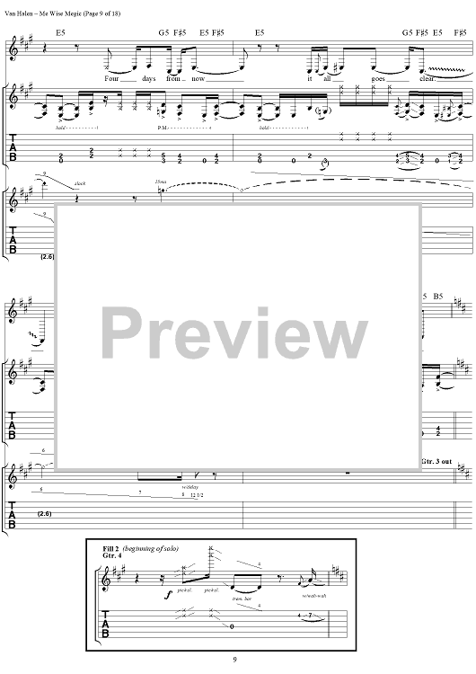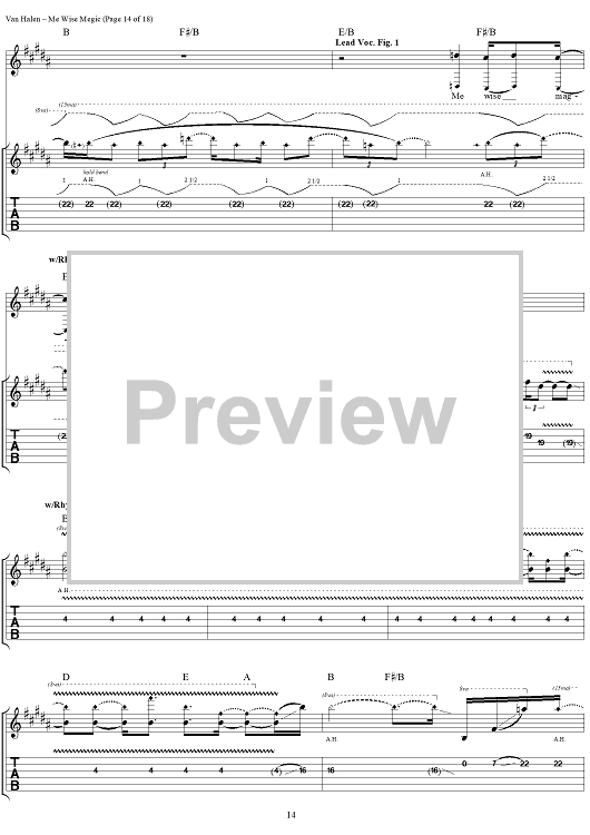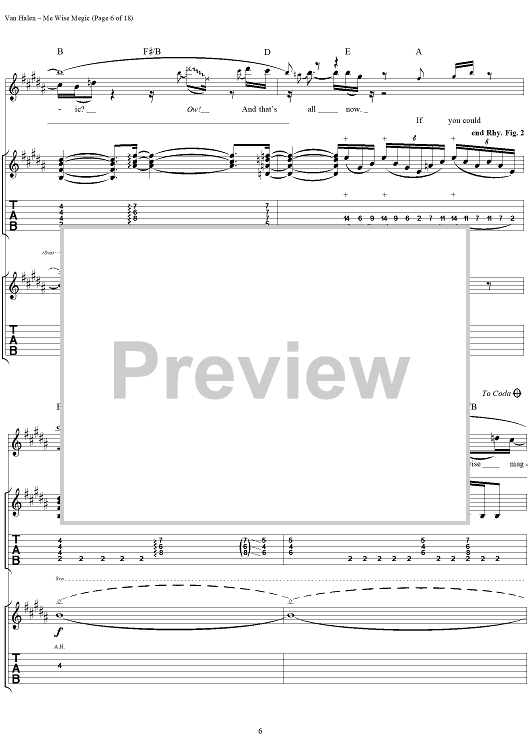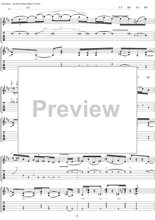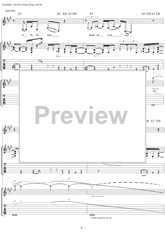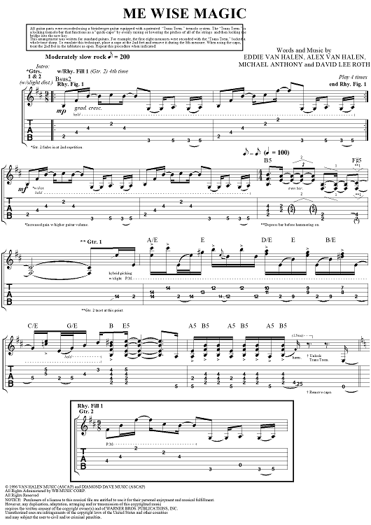 Digital Sheet Music for Me Wise Magic by Eddie Van Halen, David Lee Roth, Michael Anthony, Alex Van Halen, Van Halen scored for Guitar Tab/Vocal; id:120143