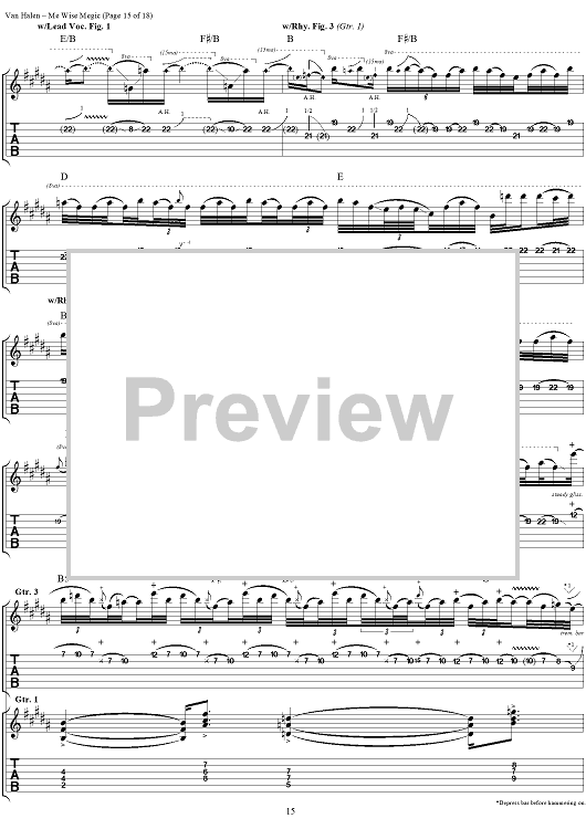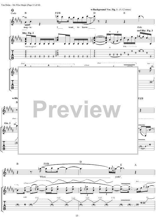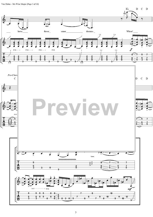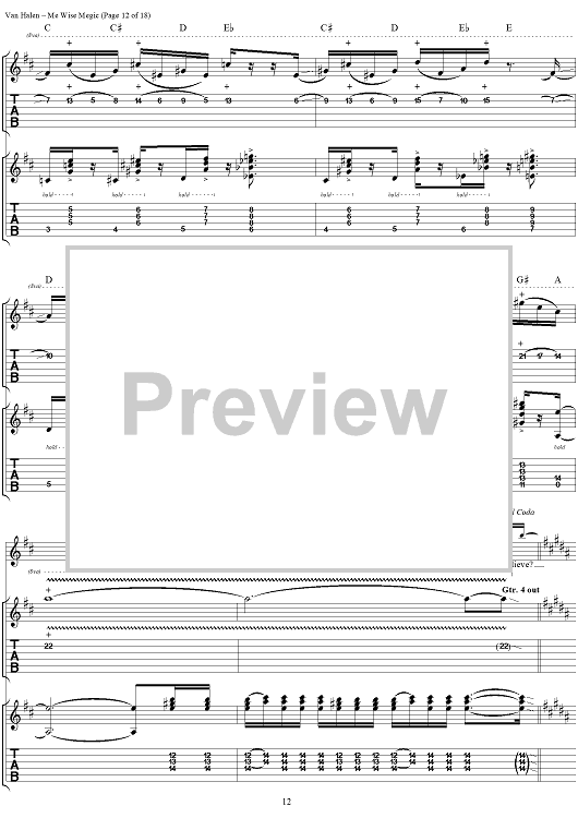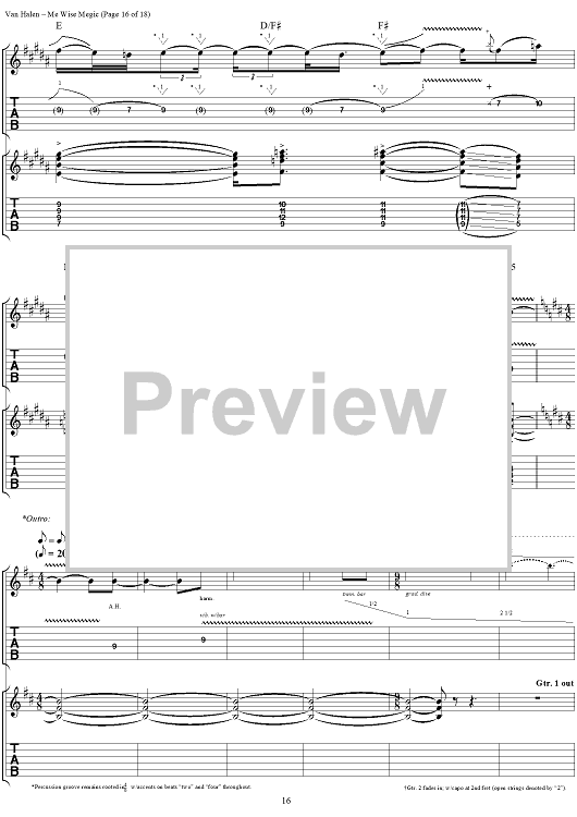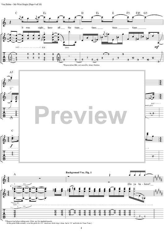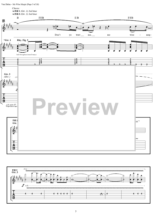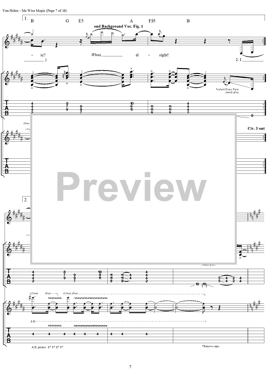 Digital Sheet Music for Me Wise Magic by Eddie Van Halen, David Lee Roth, Michael Anthony, Alex Van Halen, Van Halen scored for Guitar Tab/Vocal; id:120143