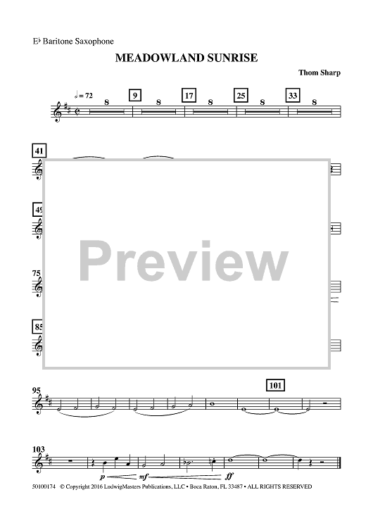 Digital Sheet Music for Meadowland Sunrise - Eb Baritone Sax by , Thom Sharp scored for Concert Band; id:461476