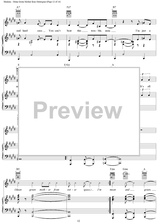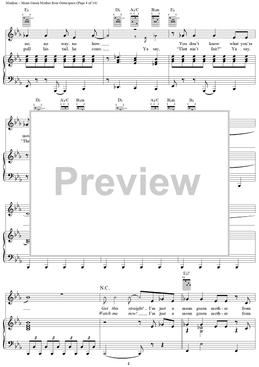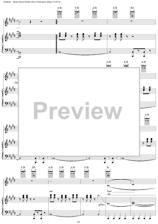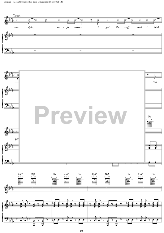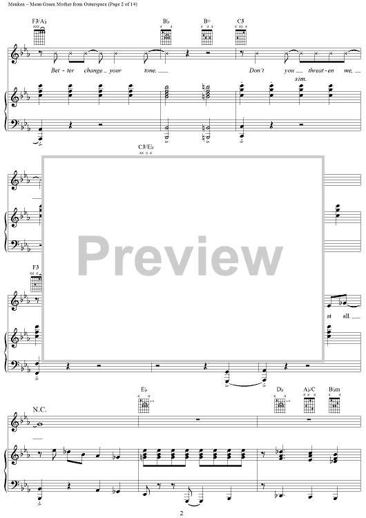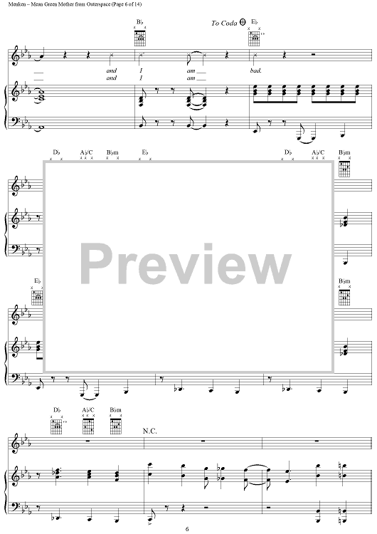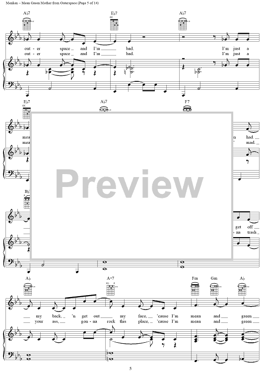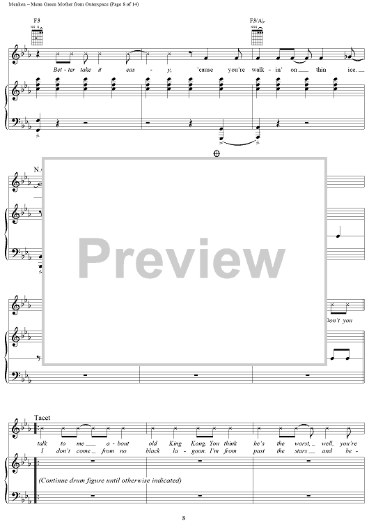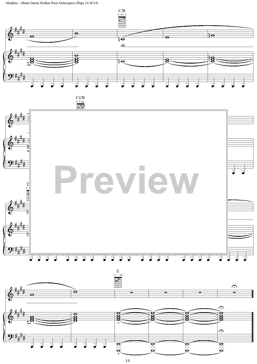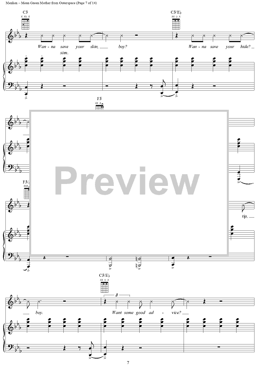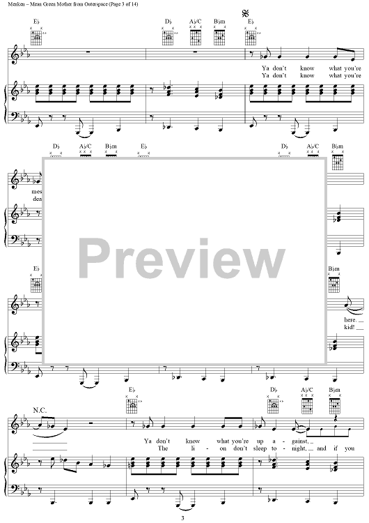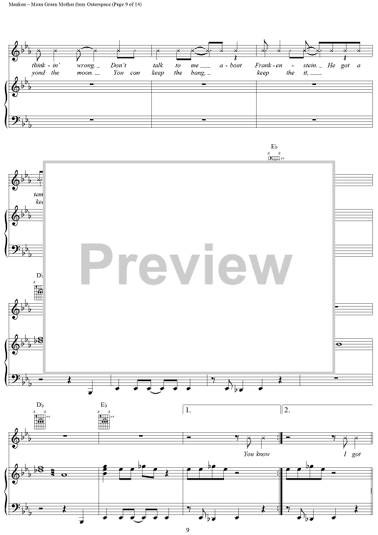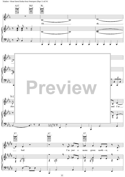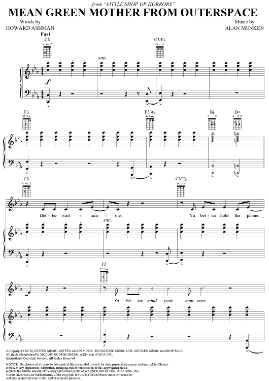 Digital Sheet Music for Mean Green Mother from Outerspace by Alan Menken, Howard Ashman scored for Piano/Vocal/Chords; id:308117