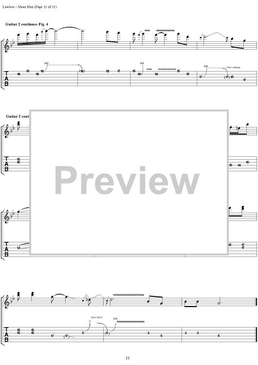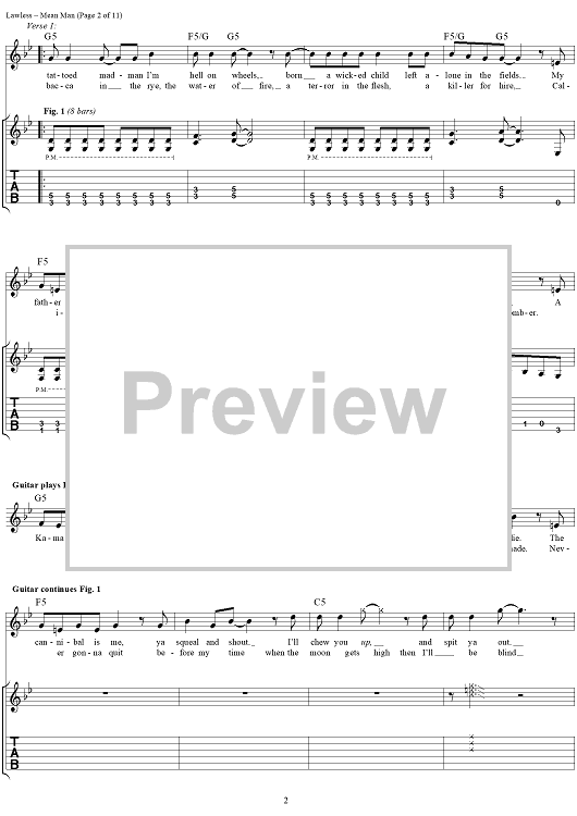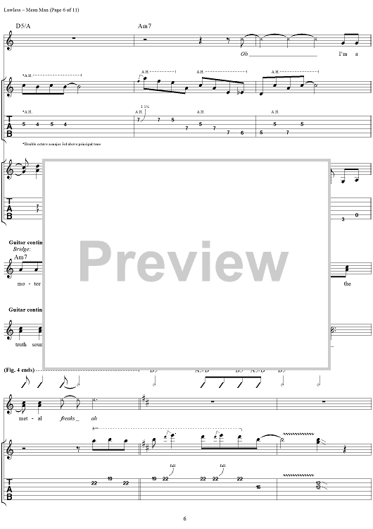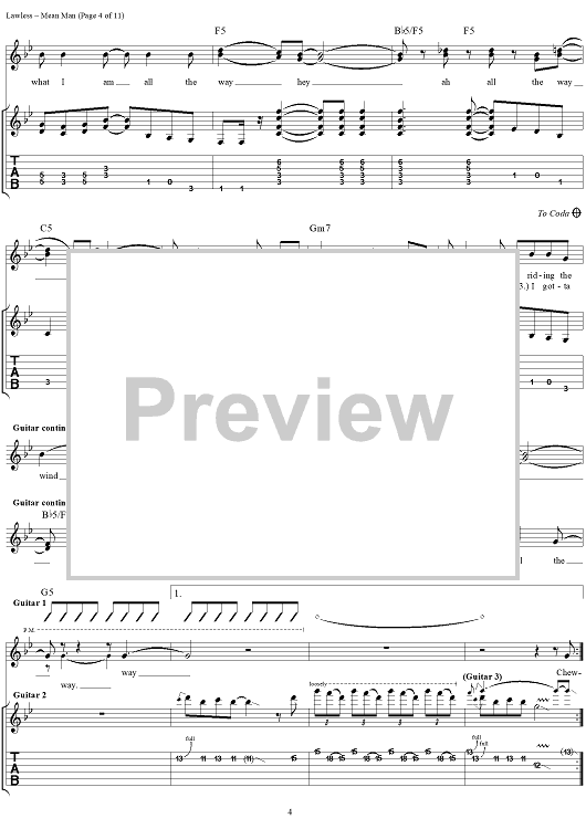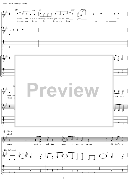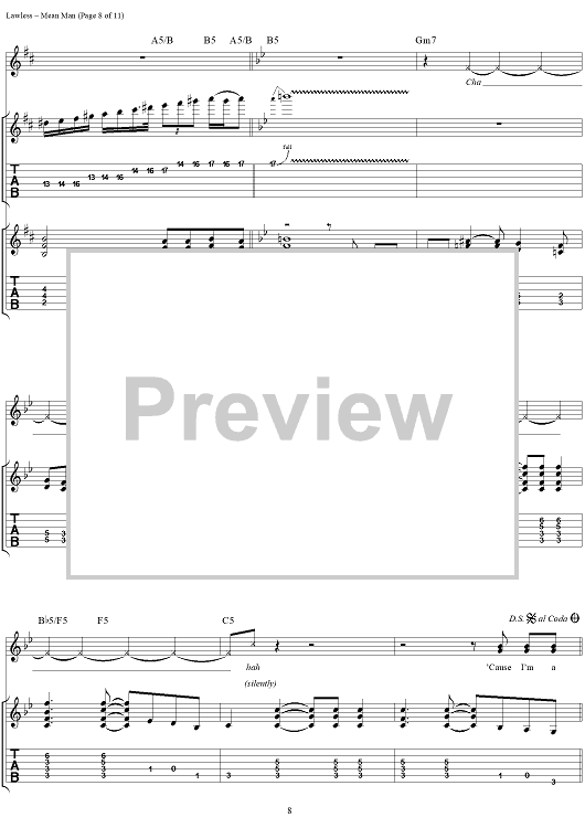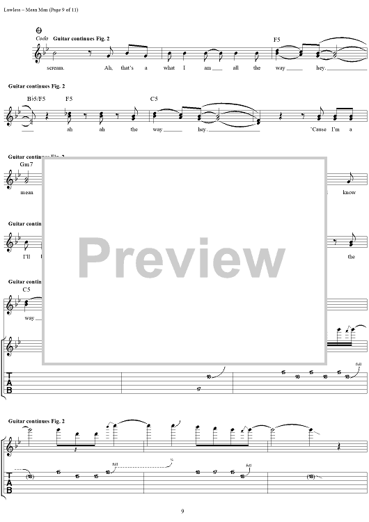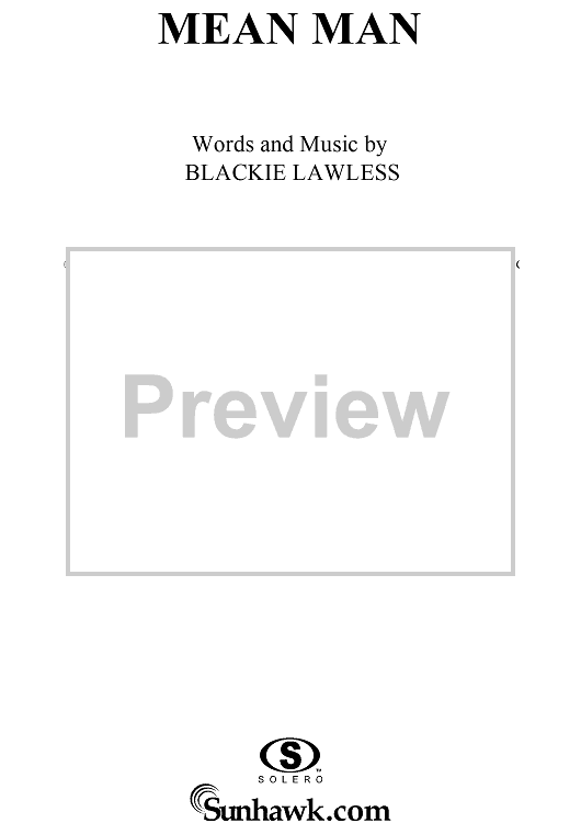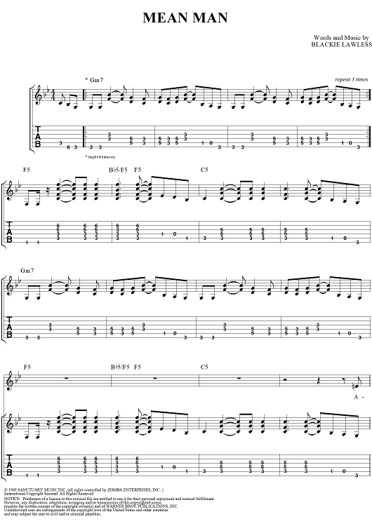 Digital Sheet Music for Mean Man by Blackie Lawless, W.A.S.P. scored for Guitar Tab/Vocal; id:250395