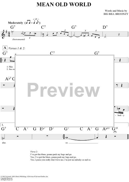 Digital Sheet Music for Mean Old World by Big Bill Broonzy scored for Lead Sheet; id:291506