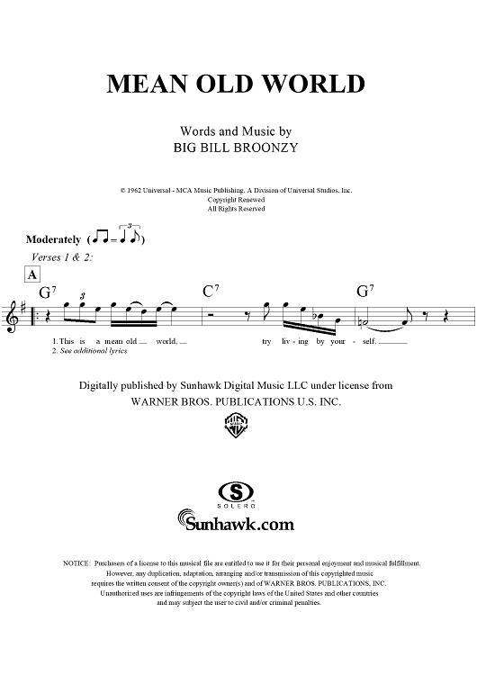 "Mean Old World" Sheet Music by Big Bill Broonzy