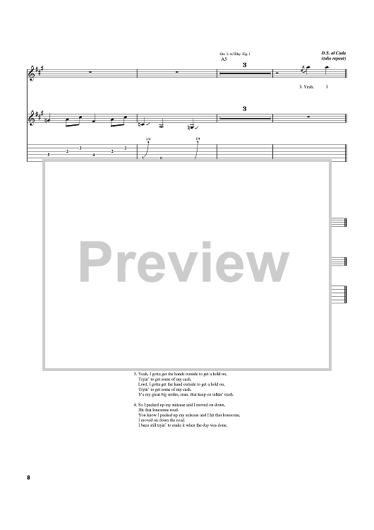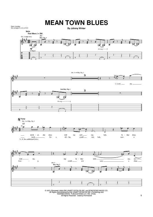 Digital Sheet Music for Mean Town Blues by Johnny Winter scored for Guitar Tab; id:371416