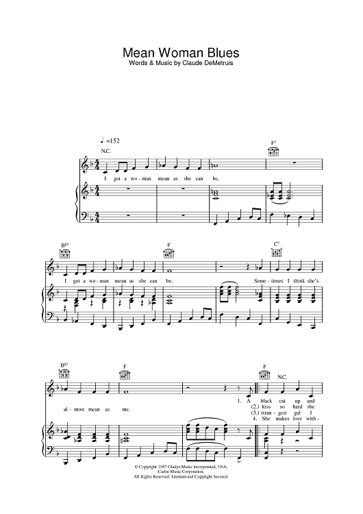 Digital Sheet Music for Mean Woman Blues by Elvis Presley scored for Piano/Vocal/Chords; id:376435