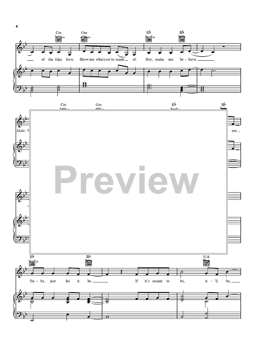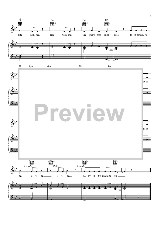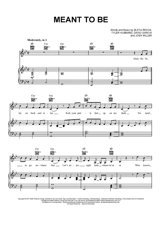 Digital Sheet Music for Meant To Be by Joshua Miller, Tyler Reed Hubbard, Florida Georgia Line, Bebe Rexha, Bleta Rexha, David Garcia scored for Piano/Vocal/Chords; id:465855