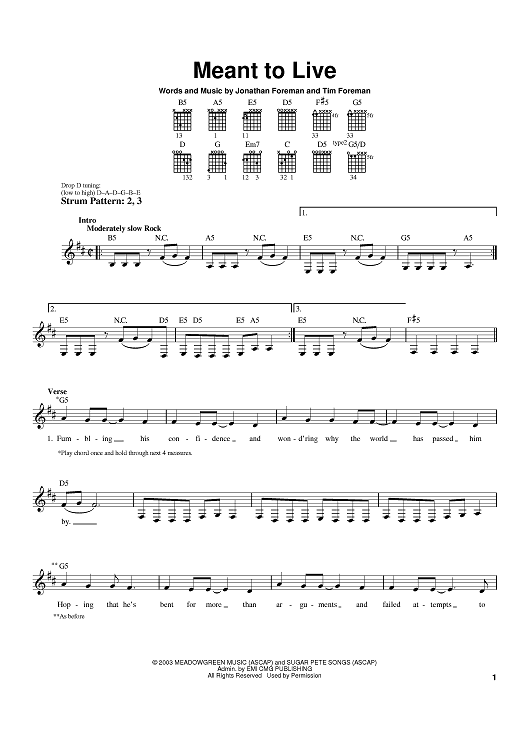 Digital Sheet Music for Meant To Live by Jonathan Mark Foreman, Switchfoot, Tim Foreman scored for Easy Guitar; id:398233